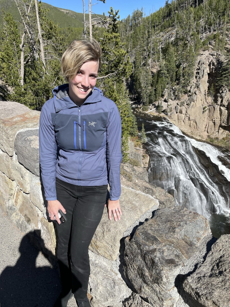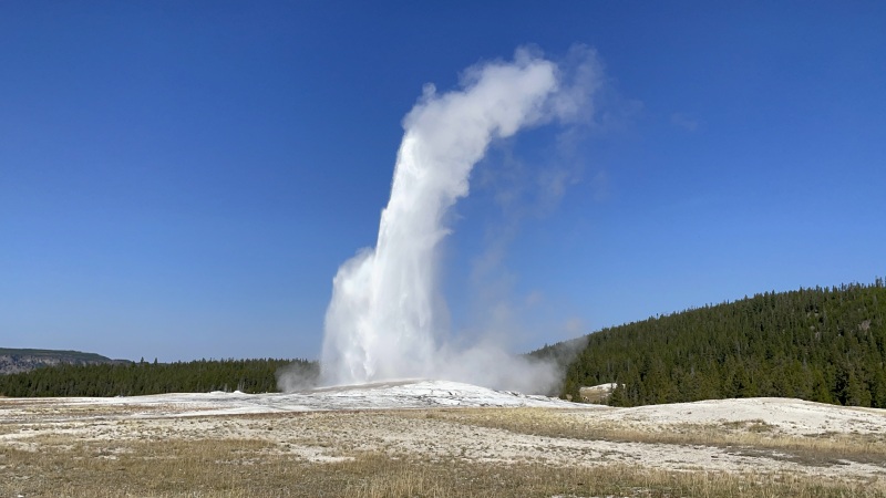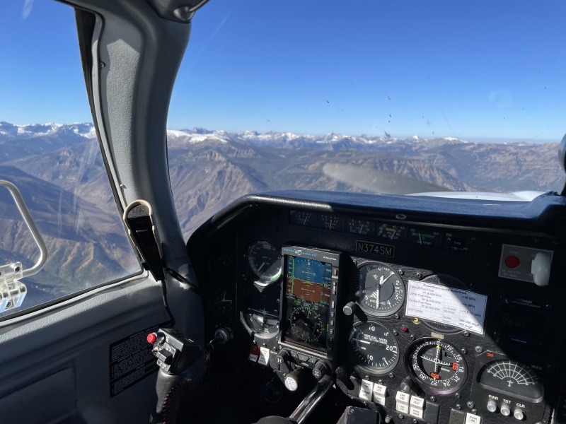 The weather went pretty much according to plan, and the Winds Aloft forecast showed light winds aloft, and cool temps (good DAs), so I decided it was safe to cross into Yellowstone on Saturday morning. Sylvan Pass is around 8600 ft MSL, so I had planned the crossing at 10,500 ft. 6500 ft DA on takeoff in COD, but the airplane performed fine and the crossing wasn't very bumpy at all, despite the winds aloft being more than forecast. The scenery continued to get better as we approached Sylvan Pass. Once we got through Sylvan Pass (by itself a pretty scenic flight), we flew over Yellowstone Lake (7700ft MSL), under clear if a bit hazy skies, and headed down into Jackson Hole to make a flyby of the Grand Tetons at basically eye level. Courtesy called JAC Tower and they asked me to stay west of final, close to the mountains, which was pretty cool. Not bumpy at all, despite being right next to the mountains. It was an amazingly scenic flight. We headed back up towards Yellowstone, maintained 2000 AGL, and did a couple quick loops around Old Faithful and Grand Prismatic Spring, and landed in West Yellowstone. We walked over to the main terminal and got our rental car and booked a hotel. Katherine found a great bar to have lunch (and margaritas!) at on the nearby lake in Montana, and afterwards we dropped off Magic at the hotel and headed right into the park. We did the north part of the park first, heading up towards Mammoth Spring and seeing lots of Buffalo and cool sights. We also went by one of the major Geyser areas at sunset. Second day we went south towards Old Faithful, Grand Prismatic Spring, and the rest. Katherine and I felt the Grand Prismatic spring was much better seen from the air, but we also found a trail to hike up and view it from a small mountain nearby, which was much better. We got to Old Faithful right on time, and we saw it erupt with only 10-15 minutes of waiting. We saw the paint pots, lots of other thermal areas, and went by Yellowstone Lake. We ended the day at the Grand Canyon of the Yellowstone, which was incredible. Back in town, we would play toss with Magic in the city park, which was great. We had dinner from a taco truck adjacent to the park. We also stopped one night and got Magic some McDonalds nuggets as an apology for leaving her crated for 2 straight days. Our hotel was the most expensive of the trip, at over $300 per night, and it was a Best Western Motel, but at least it had a fairly good hot breakfast buffet and an attentive staff. I managed to smuggle out some breakfast sausage for Magic both days. West Yellowstone itself isn't much of a town, but we walked around a little bit and got the obligatory Magic photo with the state flag, near the park entrance. The park entrance was literally 1/4 mile from our motel.