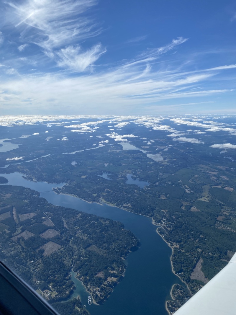 Filed IFR from the customs box and set off for Bend, OR for cheap-ish fuel and to get out of the marginal weather in the Seattle/Portland/coastal area. Great views again of all the volcanoes on the way out of the Seattle area. Uneventful visual into Bend. No crew car (lost keys) in Bend, so we ordered UberEats Chipotle at the FBO, played some brief toss with Magic, and then we were back in the air, aiming to get to Rancho Murieta by dark.