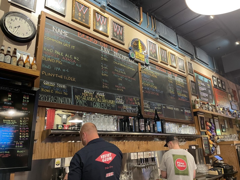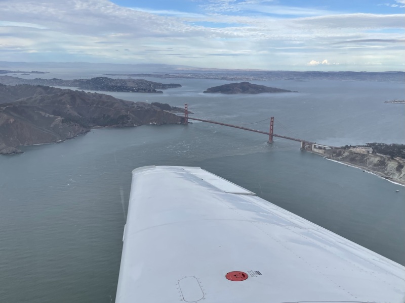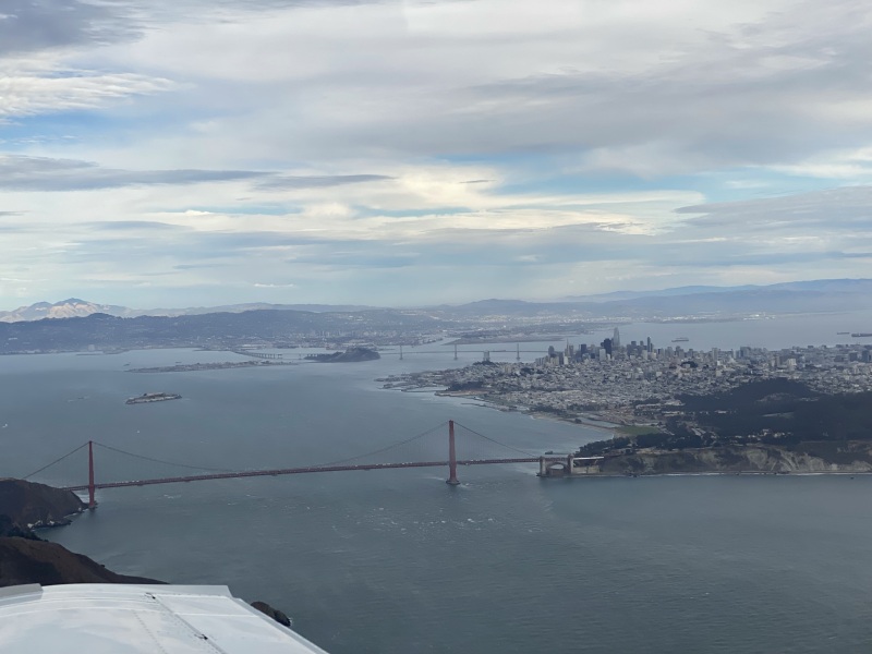 Worked the morning and got an early afternoon (local time) start. Brian and I had stopped by the airport earlier to grab my GPS database card so I could update the nav data, and clean the bird poop off of the plane. As it turns out, the only available transient tiedown spots were within "pooping distance" of a tree that apparently contained bright purple berry-eating birds. Anyway, I got the airplane prepped while Katherine finished the work day, we went back home, grabbed Katherine, and made a quick stop by Sandy and Larry's house before departing. It was a short, uncomplicated VFR flight. Weather in the Bay Area was nice, so I planned to do a very brief 'mini Bay Tour' on the way to Sonoma. It was easy enough to stay out of the Bravo and make a quick flyby of Alcatraz, the Golden Gate Bridge, and turn north towards the Marin Headlands. We had an easy arrival and landing in Sonoma. We got a rental car, booked a hotel in Santa Rosa for two nights while at the FBO, and spent two days there. Our first night we made the obligatory stop at Russian River Brewery to have Pliny the Elder on tap. On Thursday we took a half day off work and headed down to Sonoma to do some wine tasting. We had a great time visiting tasting rooms, including Highway 23 and Pangloss Cellars, where we had an excellent tasting and cheeseboard. (And Katherine joined their subscription club)