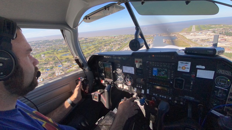 We got up early and walked around, and had an excellent brunch in Austin, TX (at Moonshine Grill, which turned out to be a quite popular place!), then departed IFR to New Orleans. This was an easy flight, and I got the visual into NEW with great views of the city on the way in. We missed out on the courtesy car, but I grabbed an Uber and we had lunch at Dat Dog on Frenchmen St and walked around the quarter for a few minutes. I was concerned that we needed to be back in Orlando by 10pm (as my car was not parked in the hangar and we'd have no other way out of the ramp), and with losing an hour to timezone changes, it was going to be close. So we quickly Uber'd back to the airport.