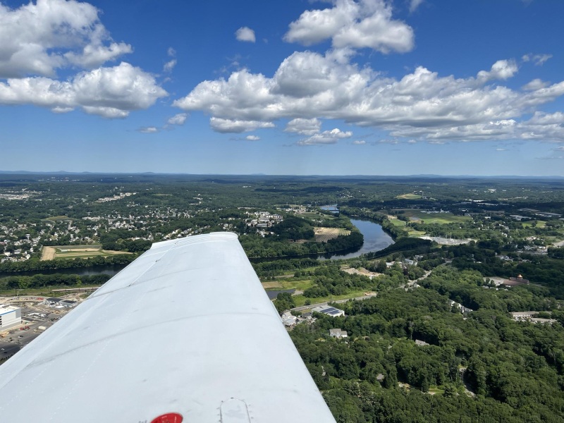 A strong-but-brief cold front passed over on Thursday night into Friday morning, and it became clear that clear skies and fair weather would prevail all weekend, so I booked our campsite (we got the last spot!) and rental car, and got ready to depart. I decided that I wanted to stop by Laconia, NH for fuel and lunch on the way to Bar Harbor, since I had heard it was a beautiful approach over Lake Winnipesaukee. We made an easy VFR flight up to Laconia, and indeed the approach into there was as advertised. We landed and were immediately tossed the keys to an old crew car to go grab lunch. We walked around Laconia a bit and enjoyed our lunch in a park.