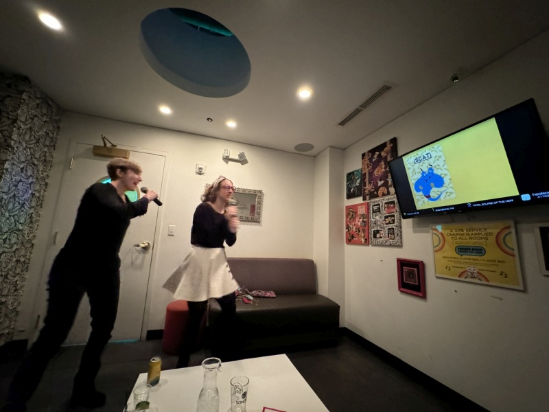 We made another VFR flight to Cincinnati, and landed just before sunset. We got an Uber and headed to our hotel in downtown. We dropped our stuff and tucked Magic away in her travel crate, and we walked over to Tokyo Kitty to meet Carly at karaoke. We had our private room booked for 2 hours, and we enjoyed every minute of it. Tokyo Kitty is a very cool karaoke bar, and normally they have a robot that serves drinks to the rooms, but unfortunately on this visit the robot was out of service.